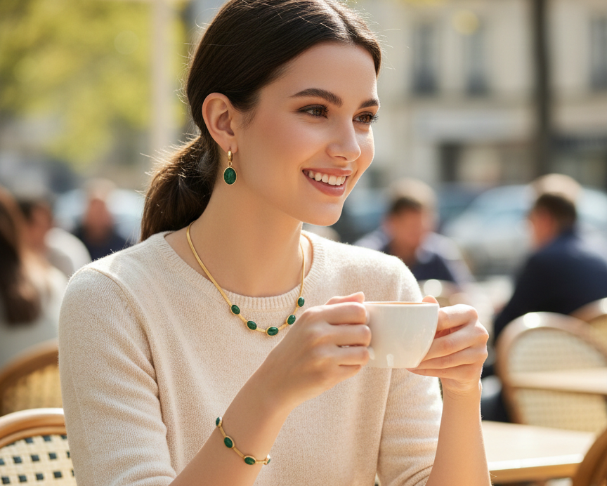 Curves that flow like silk and emerald tones that command the room. It’s not just jewelry; it’s a statement of power and grace. Crafted with precision and elegance, this jewelry piece exudes sophistication and luxury.